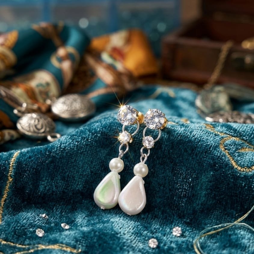 This beautifully handcrafted AD (American Diamond) earrings is designed to reflect timeless grace and modern charm. Each piece is carefully made with precision, featuring sparkling stones that add a radiant shine to your everyday or special occasion look.