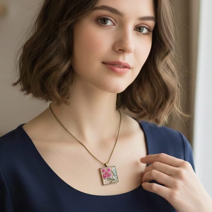 Made from high-quality, crystal-clear epoxy resin, each pendant is uniquely designed with elements like pressed flowers, gold flakes, initials, photos, or miniature charms, making it the perfect blend of nature and craftsmanship. Lightweight yet durable, these pendants are perfect for daily wear or as a meaningful gift.