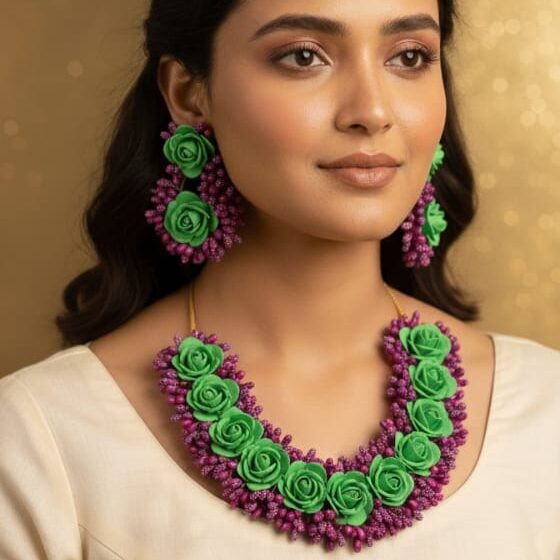 Handmade flower jewellery created with love and patience, capturing the raw beauty of blooming flowers. Perfect for free spirits and nature lovers, these pieces bring an earthy, bohemian touch to your everyday or festive look.
