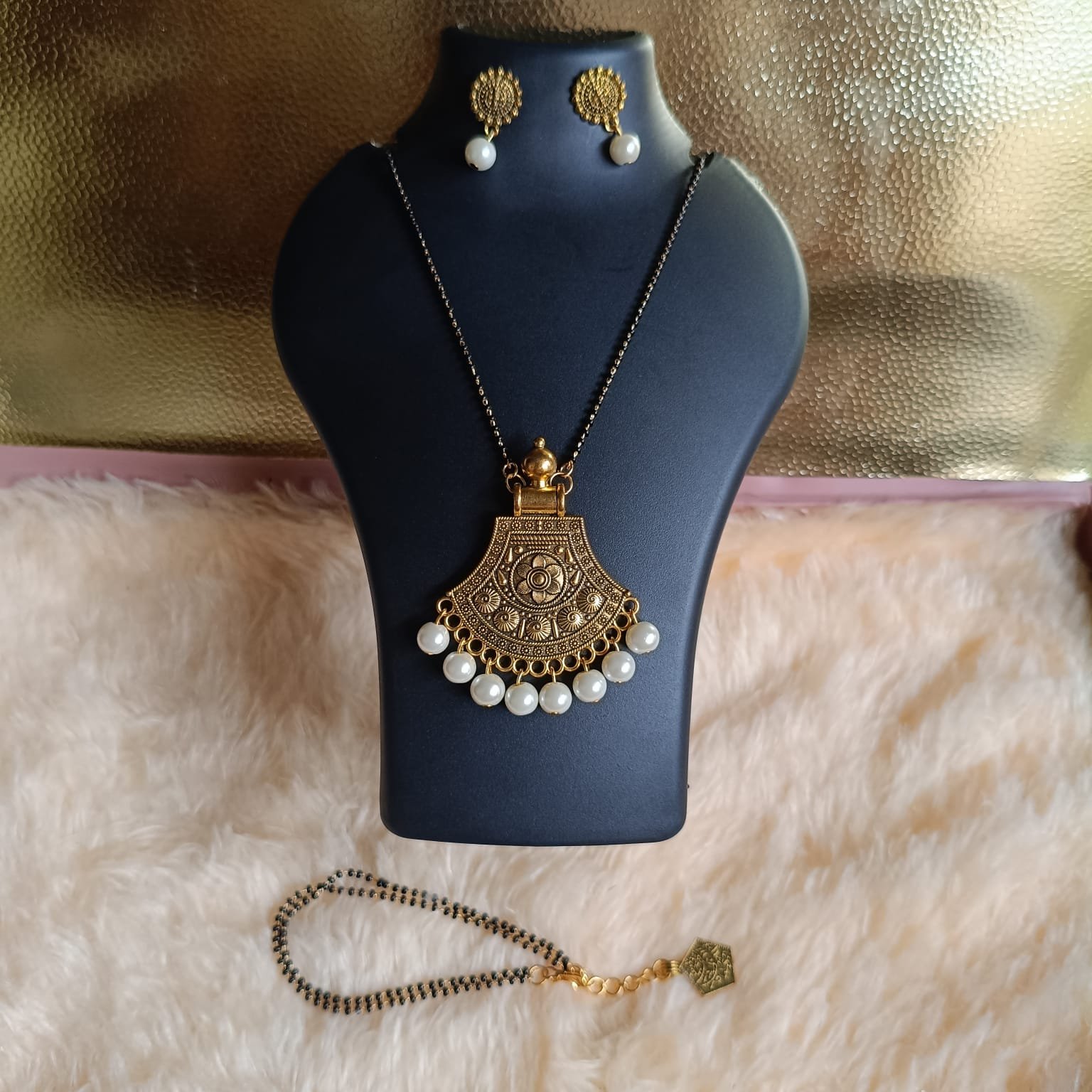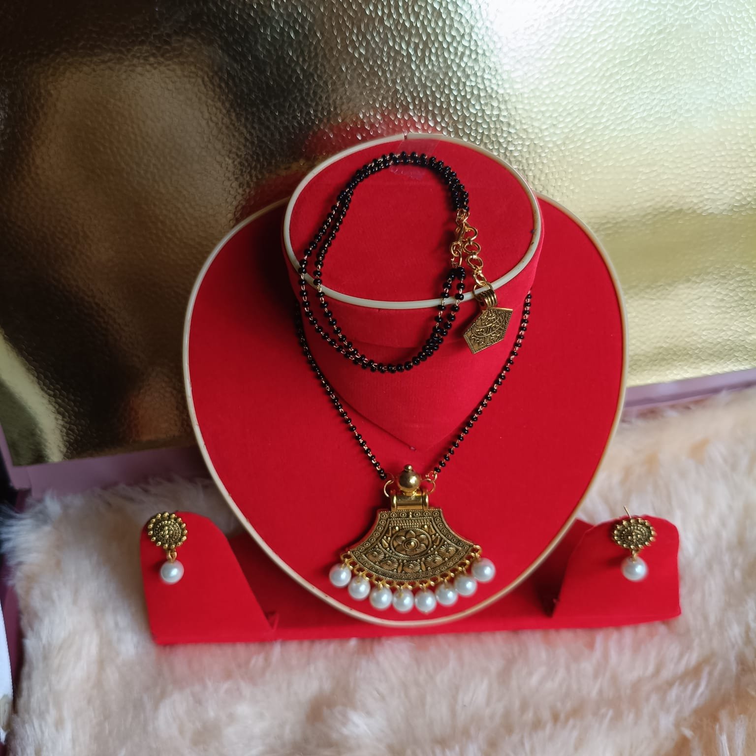 A mangalsutra is a sacred necklace worn by married Hindu women, symbolizing marital love, unity, and commitment. Traditionally made with black beads strung on a gold chain, it is adorned with a pendant that varies in style across regions and communities. The black beads are believed to ward off negative energy and protect the couple’s bond, while the gold symbolizes prosperity and well-being. Tied around the bride’s neck by the groom during the wedding ceremony, the mangalsutra holds deep cultural and emotional significance as a lifelong token of marriage.