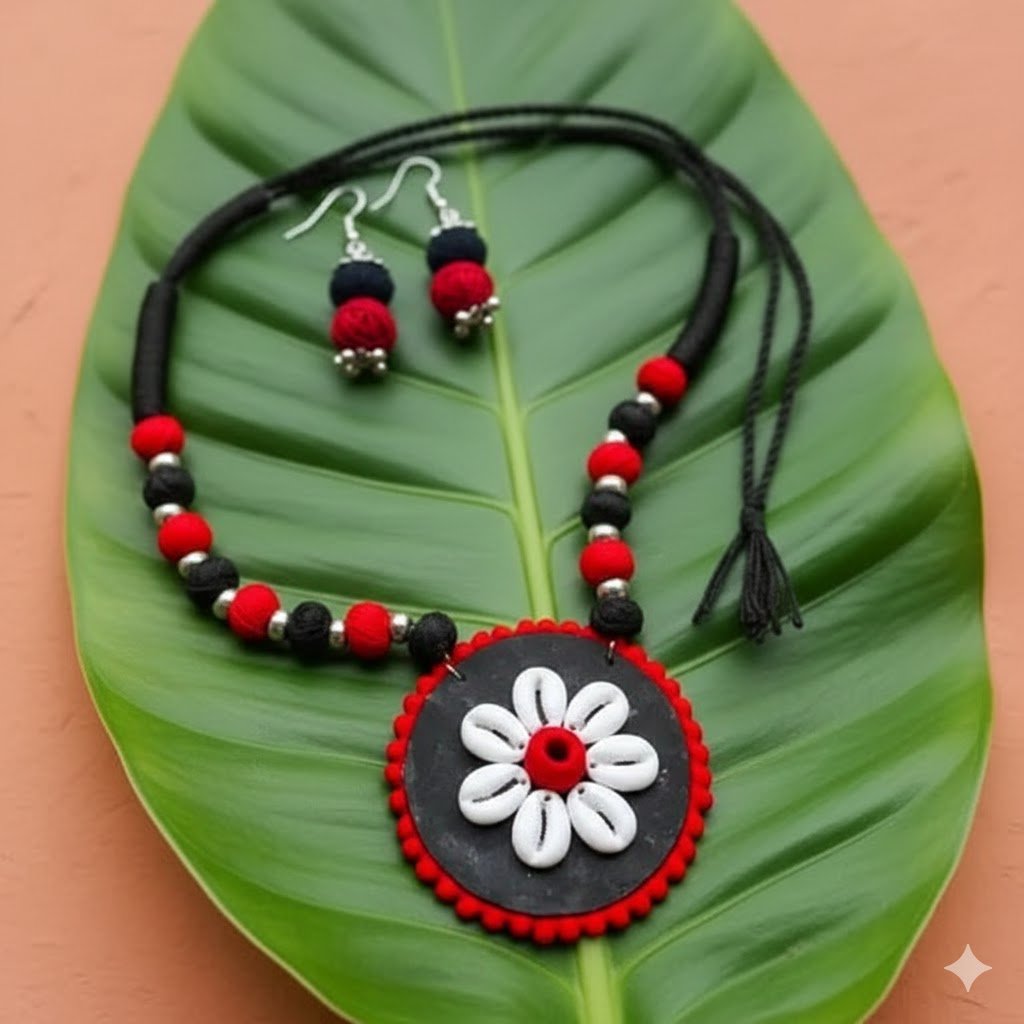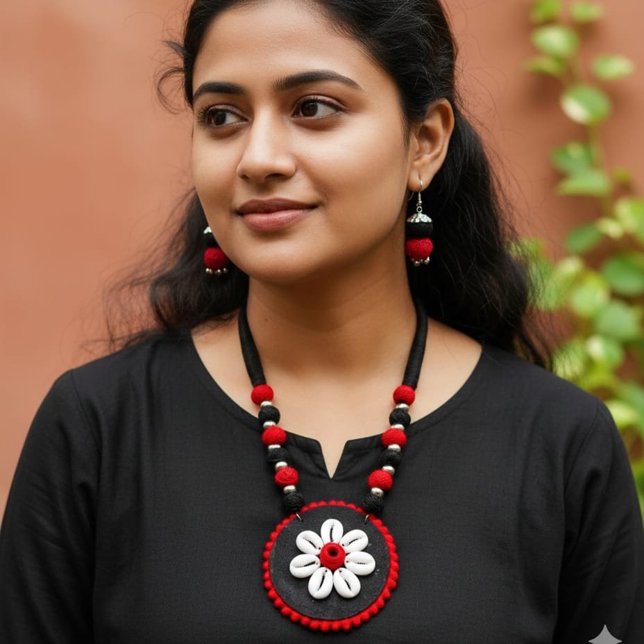 “Thread jewellery is a handcrafted art form that celebrates color, culture, and creativity. Made from eco-friendly threads such as cotton, silk, or jute, this jewellery features intricate designs often adorned with beads, mirrors, oxidized metals, and more. Its lightweight nature makes it ideal for everyday wear or festive occasions. Whether it’s a vibrant choker necklace, a pair of jhumkas, or a set of coordinated bangles, each piece of thread jewellery reflects skilled craftsmanship and ethnic charm. Suitable for all ages, thread jewellery is perfect for those who love bohemian, traditional, or fusion fashion. Pair it with sarees, kurtas, or even casual wear for an instantly eye-catching look.”